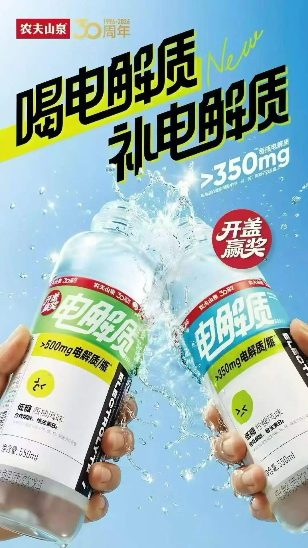 此次农夫山泉推出的电解质饮料,与旗下专业运动饮料尖叫形成差异化定位,主打低糖低负担、解渴又解乏,精准切入日常补水场景,进一步完善公司功能饮料矩阵。新品包含柠檬、西柚两种风味,规格为 550ml,添加 4 种电解质与烟酰胺、维生素 B6 双重维生素,其中西柚风味电解质总量超 500mg,柠檬风味超 350mg,含糖量 4.5g/100mL,契合健康轻食、控糖人群的消费需求。目前该新品已在线下渠道全面铺货,部分区域经销商报价为每箱(15瓶)55 元,单瓶均价约 3.67 元,同步推出开盖有奖活动拉动终端动销;线上电商平台暂未上架,处于线下先行铺货、逐步放量的阶段。