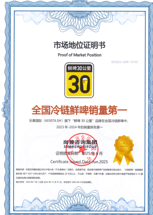 鲜啤30公里公司成立于2019年,是“乐惠国际(603076.SH)”全资子公司。乐惠国际作为液态食品装备制造商,为青岛、雪花、百威、喜力、麒麟等品牌提供“整厂交钥匙”服务的工程装备公司。