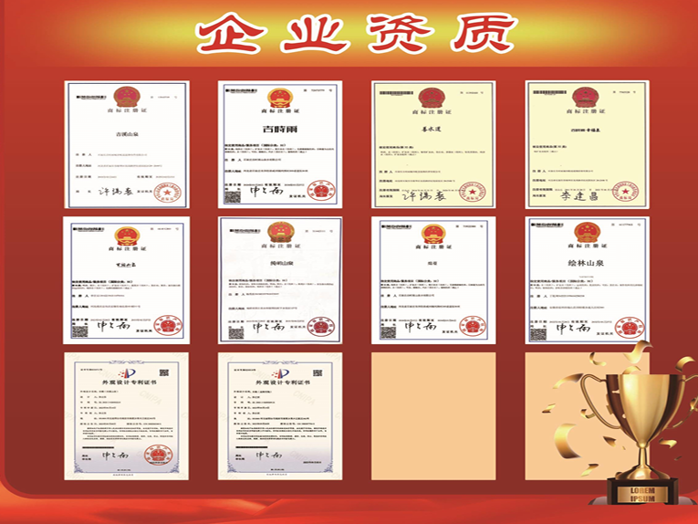 公司产品品牌:一次性包装水有“吉溪山泉”、“吉时雨”、“纯岄