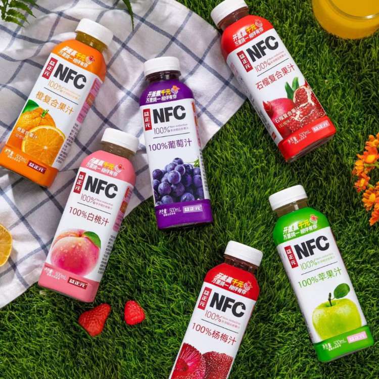产品介绍原果鲜榨,NFC纯果汁,500毫升PET材质,高端阻氧标签,全包设计,六种口味,葡萄,白桃,白桃,苹果,石榴,橙子,杨梅,满足消费者不同需求。果汁好不好,先看配料表,平价NFC果汁全国销量第。