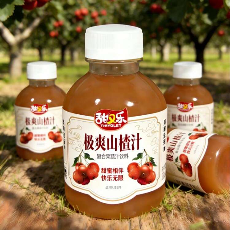 产品介绍1. 低糖,精准定位现代健康需求,在保留风味的同时降低糖分,适合追求轻负担。 2. 无添加配方,明确标注“无添加”,强调不添加防腐剂、香精、色素等,突出产品纯净、天然的品质。 3. 复合果蔬营养,以山楂汁为基础,融合多种果蔬精华,口感丰富且具备一定的营养价值。 4. 愉悦情感链接, “甜蜜韵伴快乐无限”传递出产品不仅是饮品,更是陪伴与快乐的载体,增强情感共鸣。 5. 便携瓶装设计,350mL 容量适中,适合随身携带、即饮即享,适配多种日常场景。