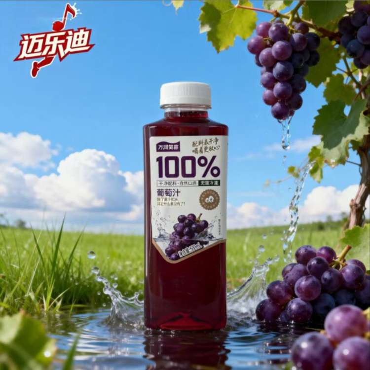 产品介绍一款采用先进无菌冷灌装技术生产的纯正果汁。产品坚持极简配方,配料中含水和红葡萄浓缩汁,果汁含量高达100%,不添加防腐剂、香精、色素或额外糖分,完美保留了葡萄果实天然的馥郁风味与晶莹色泽。包装正面醒目标注“除了果汁和水,其他什么都没有了”,直接传达其纯粹、健康的定位。产品每瓶净含量500毫升,常温保质期12个月,冷藏后风味更佳,是日常饮用、佐餐或户外活动的理想选择。