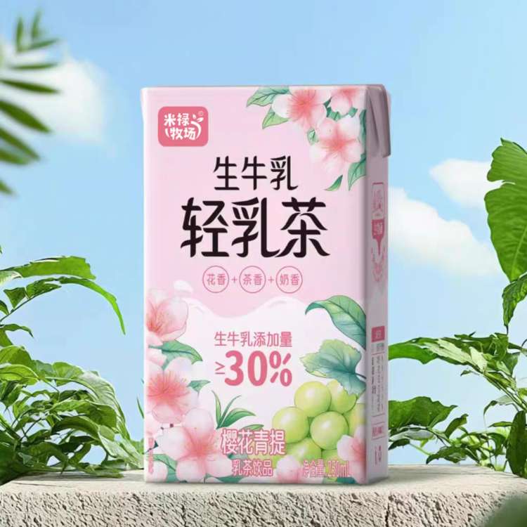 产品介绍250ml盒装生牛乳轻乳茶,生牛乳添加量≥30%,涵盖茉莉雪芽、樱花青提、栀子乌龙、金桂乌龙、茉莉酸奶、薄荷奶绿、玫瑰普洱、红豆薏米、姜枣红茶等十余款丰富风味,花香、茶香、奶香交融,口味多元且兼顾时令需求与健康属性。