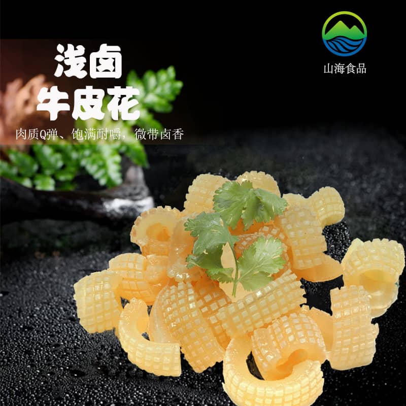 麻辣烫/冒菜/火锅:已解冻的牛皮花倒入麻辣烫/冒菜/火锅汤料中,加热入味即食;