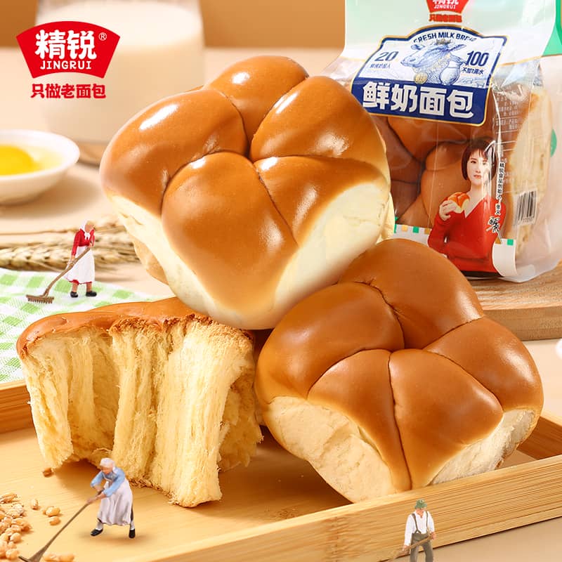 精锐老面包,只做老面包。专注生产:精锐食品5年只专注生产老面包,专注才能生产高性价比老面包。传统工艺:精锐老面包采用低温老面发酵工艺,让味道延续经典,简单而不失厚道,传统古法手艺,面包入口香甜软糯,经典怀旧。优质原料:精锐食品坚信美味来自优质原料,新鲜的鸡蛋,新西兰进口的乳粉,优质的植物油,特级面包专用粉,选得优食材,匠造老味道。