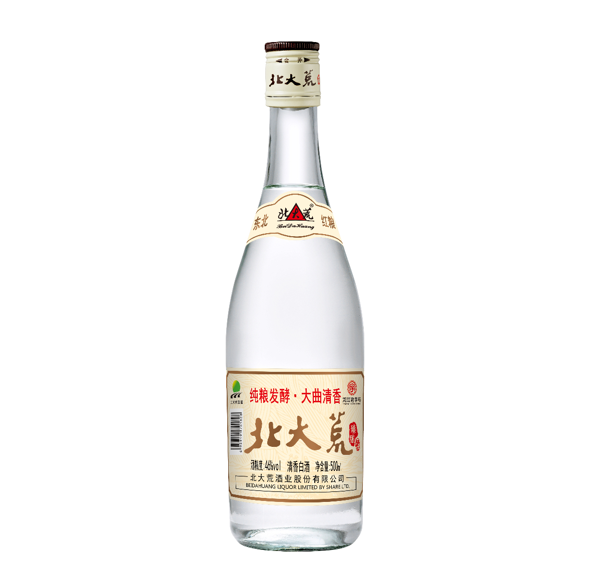 1.北大荒-精选五粮纯粮固态发酵型大曲清香型白酒。