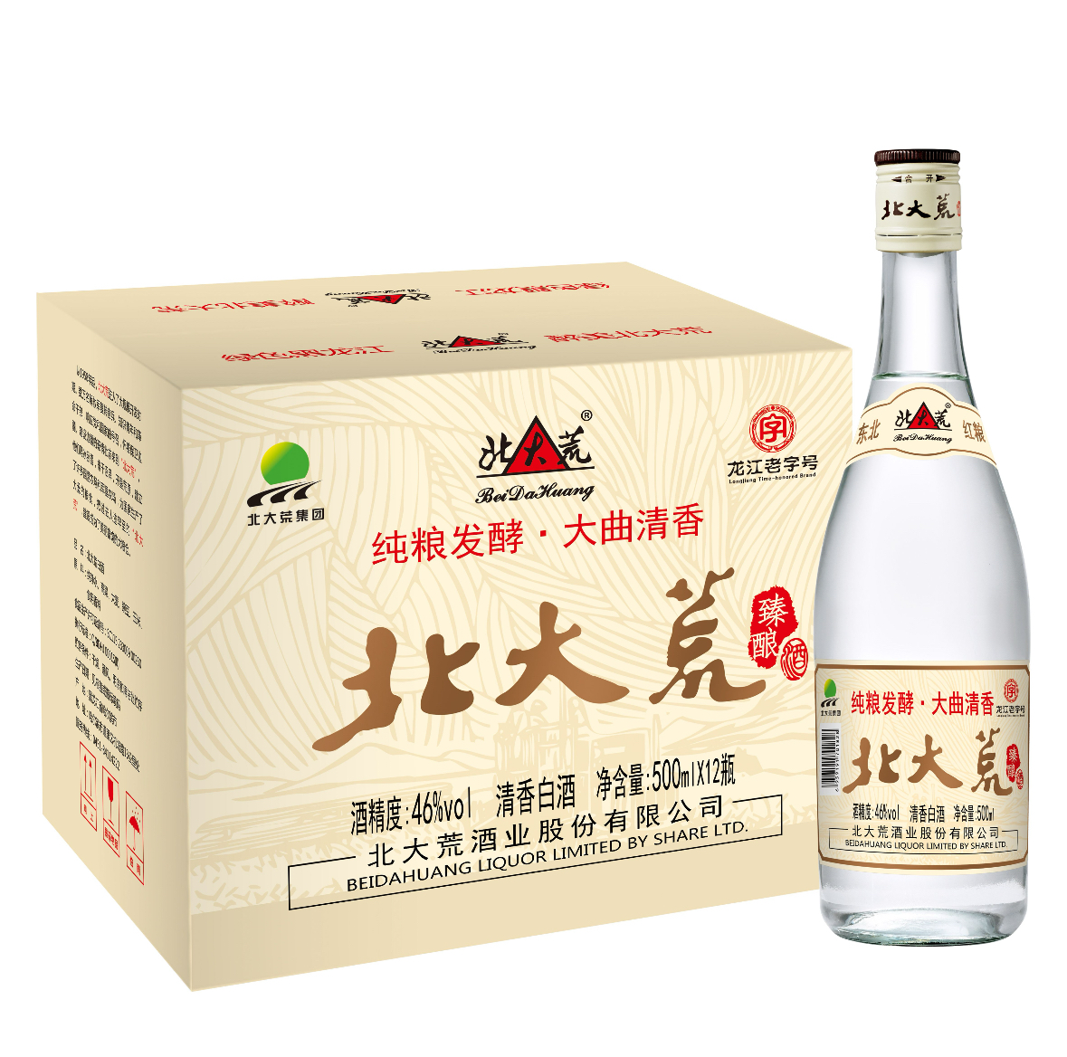 北大荒 臻酿瓶酒 清香型 46%vol 500ml 12瓶/箱