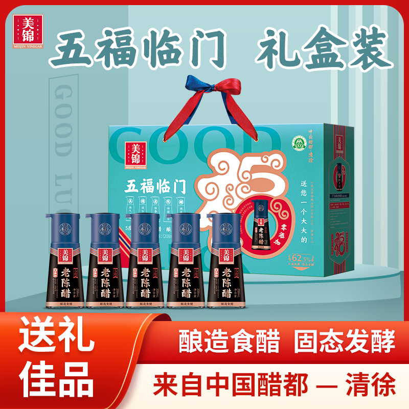 五福临门礼盒,208mL5度美锦老陈醋,0添加防腐剂(苯甲酸钠、山梨酸钾),