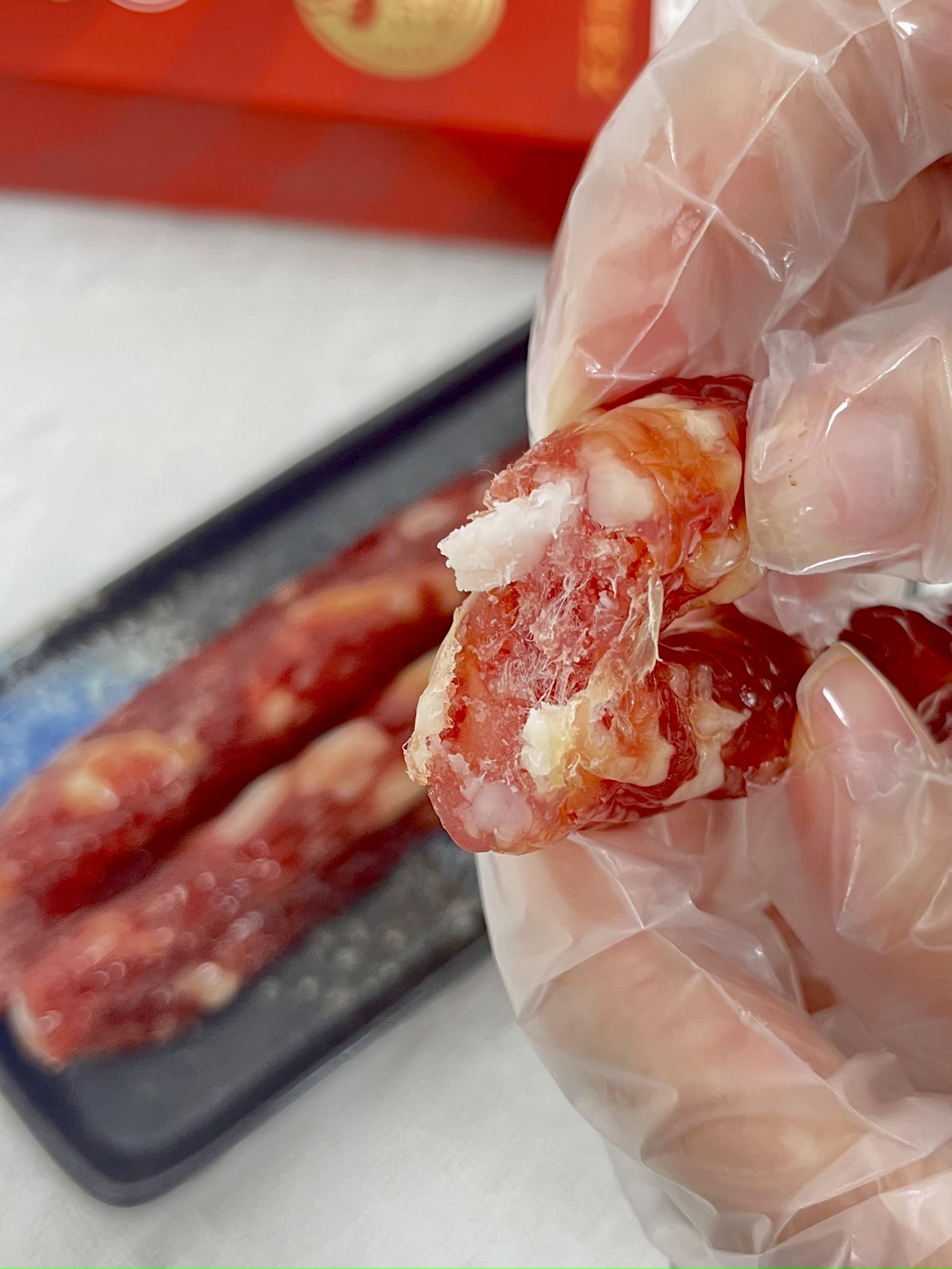 ✅我们的【广式腊肠】为健康特别定制了***腊肠,❌没有大豆蛋白、淀粉之类的添加剂,到手就是地道广式腊味���