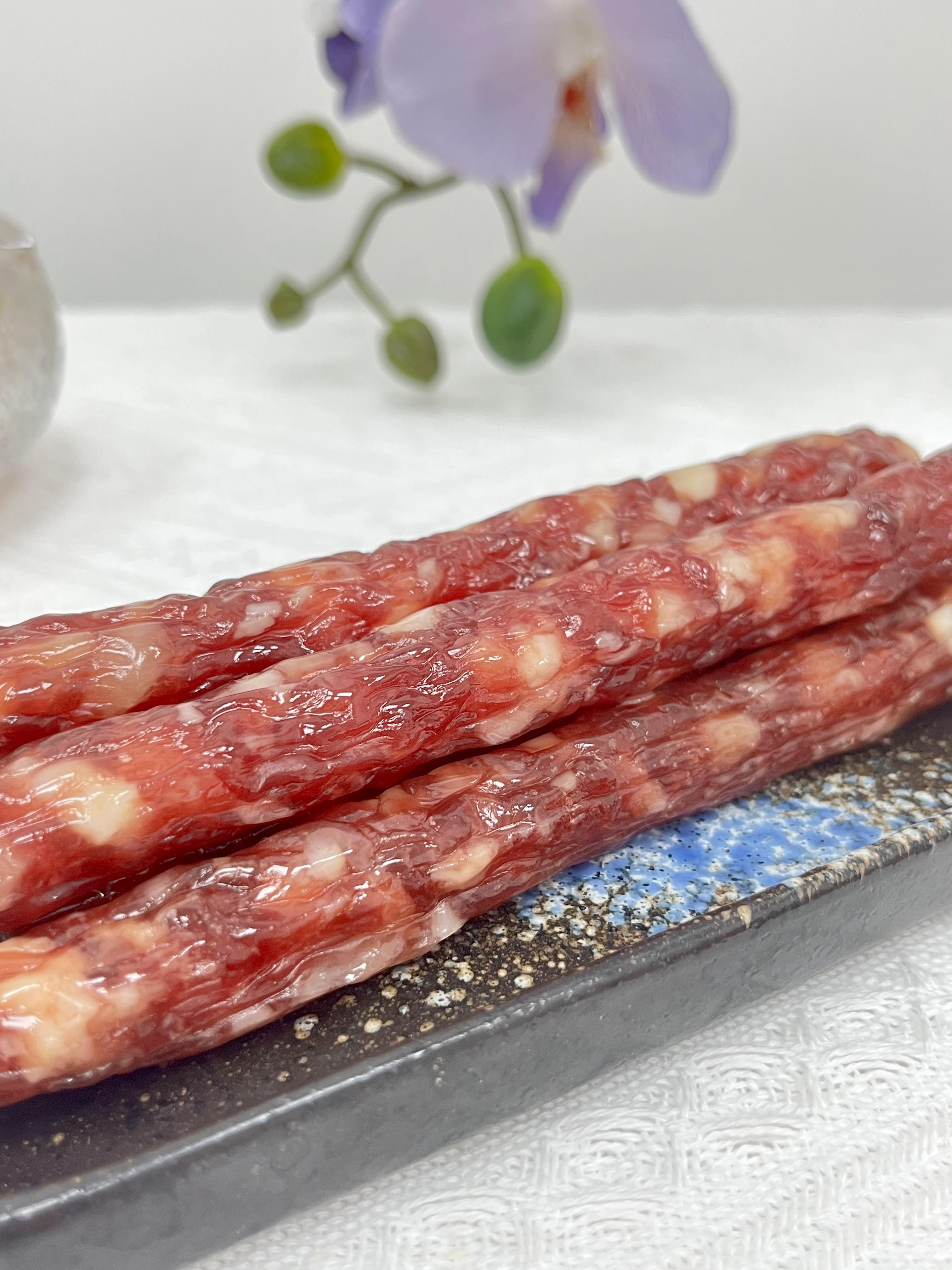 比起其他地区的腊肠,独具特色的【广式腊肠】色泽明亮,香味醇厚? 在微甜与酒香中品尝瘦肉的紧致与肥肉的温润 ,可蒸可煮,炒菜拌饭皆宜。