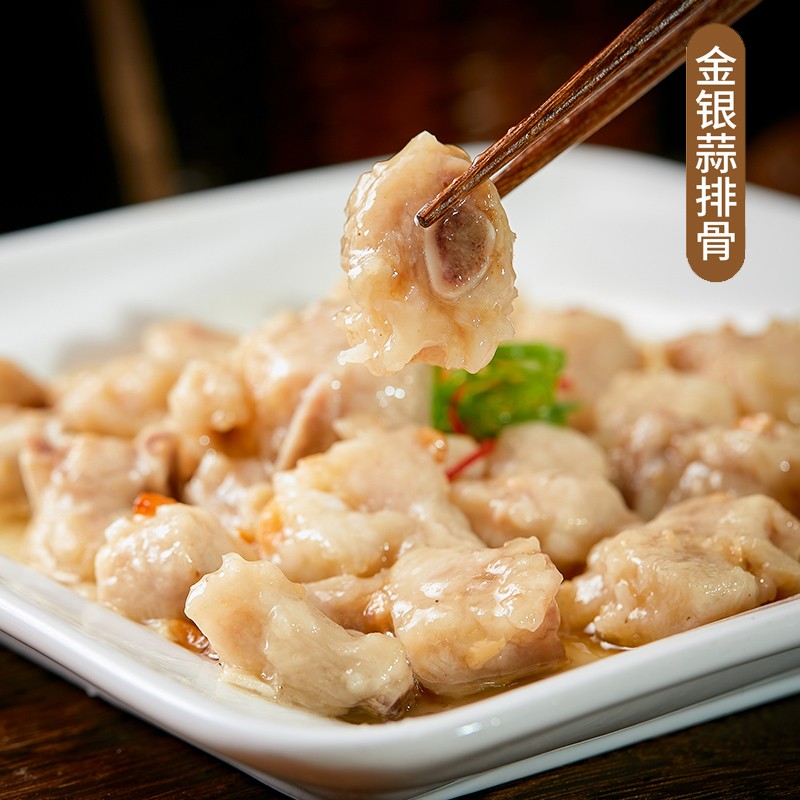 当炸过的香喷喷金银蒜遇上鲜香味美的排骨, 美味的排骨就有了自己的完美搭配。 食材与食材之间的合拍, 造就了街巷广为流传的金蒜蒸排骨, 也造就了人类刁钻的味蕾