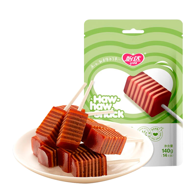 1.山楂全部来自燕山山脉的 铁山楂,产地温差大,山楂质密,果胶含量高,山楂新鲜采摘后经过怡达非遗工艺金楂六法(鲜、洗、煮、浸、 筛、冷)六个环节,六道活水清洗,全程低温工艺,锁住原果营养。烹煮+浸味时间长达 18个小时,入味足。