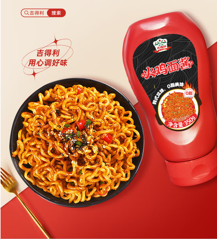 吉得利 拌面酱 0脂火鸡面酱 超辣韩式拌面拌饭下饭酱 350g