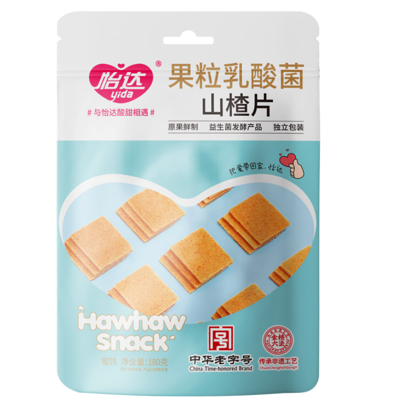 1.山楂全部来自燕山山脉的 铁山楂,产地温差大,山楂质密,果胶含量高,山楂新鲜采摘后经过怡达非遗工艺金楂六法(鲜、洗、煮、浸、 筛、冷)六个环节,六道活水清洗,全程低温工艺,锁住原果营养。烹煮+浸味时间长达 18个小时,入味足。