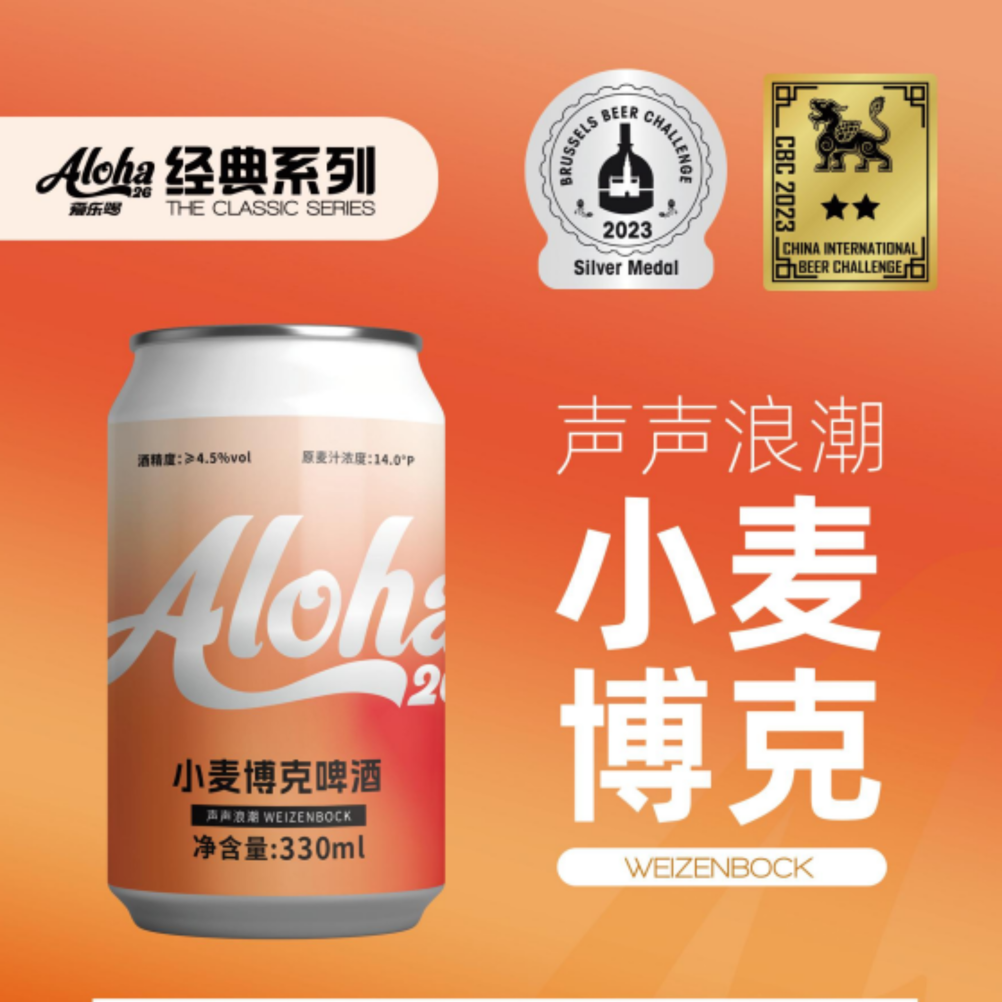声声浪潮 小麦博克: 是一款加强版德式小麦啤酒,丰富浓郁、层次分明的麦芽芳香,让人在饮用过程中,还能品尝出香蕉、糖果等香甜的气息,绵密的泡沫与醇厚的酒体,使它拥有奶油般的口感,是营造微醺状态的**。