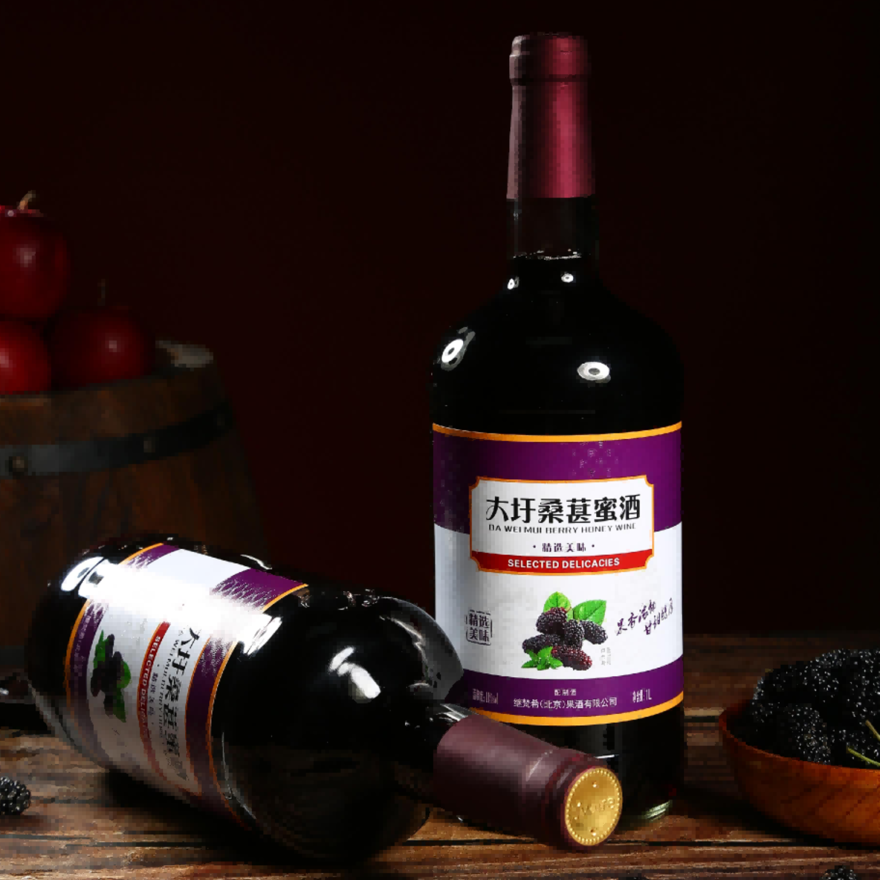 伊瓦尔大圩桑葚蜜酒1000ml:轻轻打开一瓶,桑葚清甜香气散逸在空气中,低度微醺刚刚好,放松下情绪,享受自己的时光。