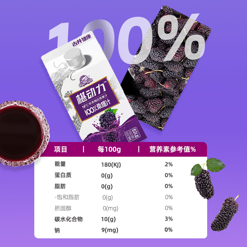 【大品牌 利润高 有保障】椹动力NFC100%桑椹汁 230ml