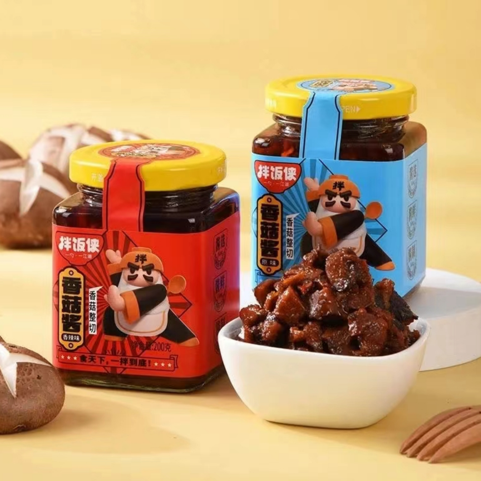 拌饭侠-香菇酱,有原味和香辣两款,甄选优质整颗香菇,传统工艺和现代技术相结合,从原料选择到工艺制作,均保留香菇自身的味道,香菇整切,大块保留,口感丝滑爽口,从肉眼上可见大块香菇,美味看得见。
