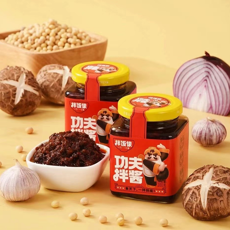拌饭侠-功夫拌酱,是经典美味,吃法多样,开盖即食,拌米饭、拌面条、夹馒头、拌凉皮、米线、炒菜、火锅蘸料,堪称简单方便的全能拌酱。
