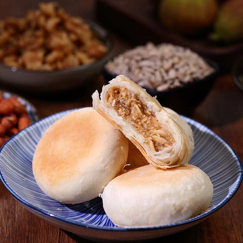 原料采用优级面粉,赤藓糖醇粉,老字号崔字牌白芝麻,馅内果仁全部有人工清洗,精心挑拣,无香精色素,不含白砂糖。