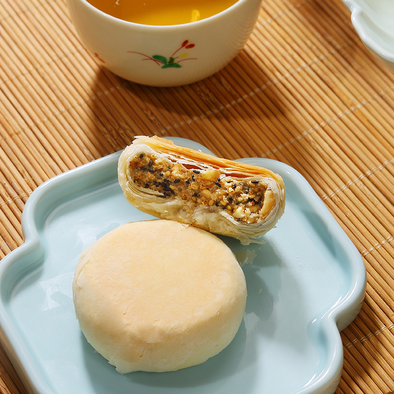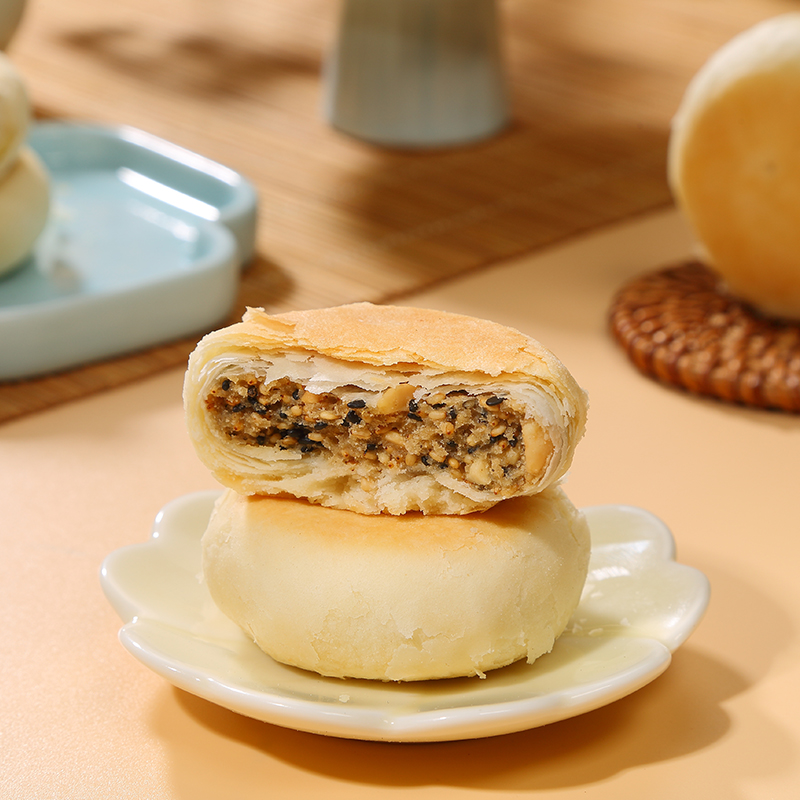 原料采用优级面粉,赤藓糖醇粉,老字号崔字牌黑芝麻,馅内果仁全部有人工清洗,精心挑拣,当季花椒,无香精色素,不含白砂糖。