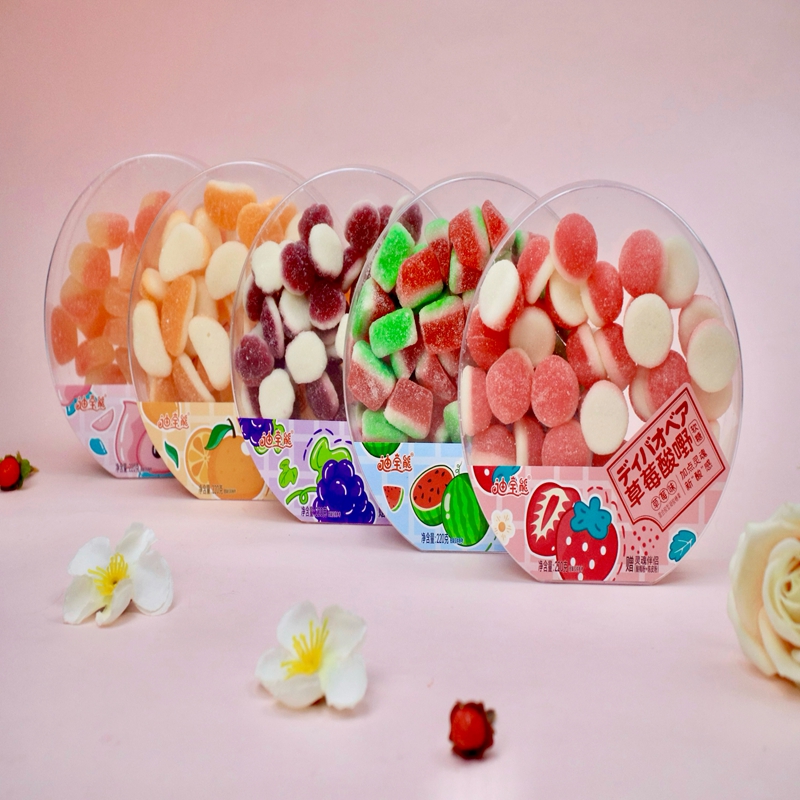 糖与酸梅粉的完美融合,在原本甜蜜可口的水果软糖中,轻轻撒上酸梅粉,陈皮粉,两者缓缓交融,形成了一种难以言喻的绝妙口感。糖的甜蜜中和了酸梅的酸涩,让整体风味更加平衡和谐,每一口都是对味蕾的**宠溺。