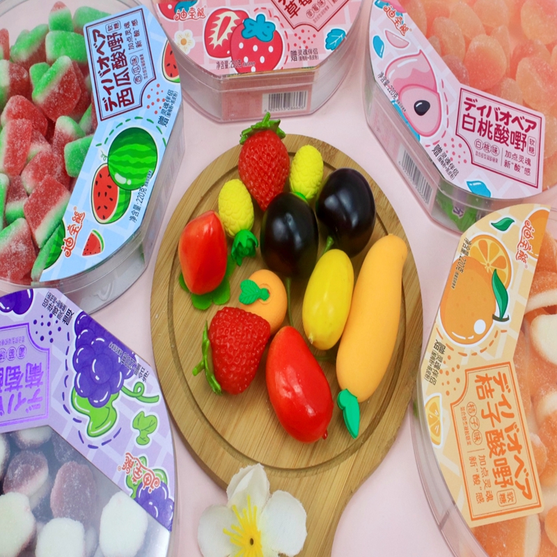 迪宝熊软糖注重健康与美味的平衡,它选用优质的原料,经过严格的工艺制作,确保每一颗软糖都是**、健康的。无论是给小朋友当零食,还是大人在忙碌之余想要放松一下心情,迪宝熊软糖都是一个不错的选择。以其独特的酸甜风味深受大众喜爱。糖果与酸梅粉之间的甜蜜碰撞,让原本的甜味变得柔和,更增添了一份酸甜的层次感。这种简单的拌糖方式,不仅**了口感,也让这份酸甜滋味更加诱人,成为许多人下午茶或休闲时光的优选。外观上相比于早期的圆盒我们推出了一款可以直立陈列的设计,塑料盒分格将我们附赠的酸梅粉,陈皮粉,小叉子放入之中,在原有的糖果基础上加了拌粉创新的概念更具有特色,好吃又好看!