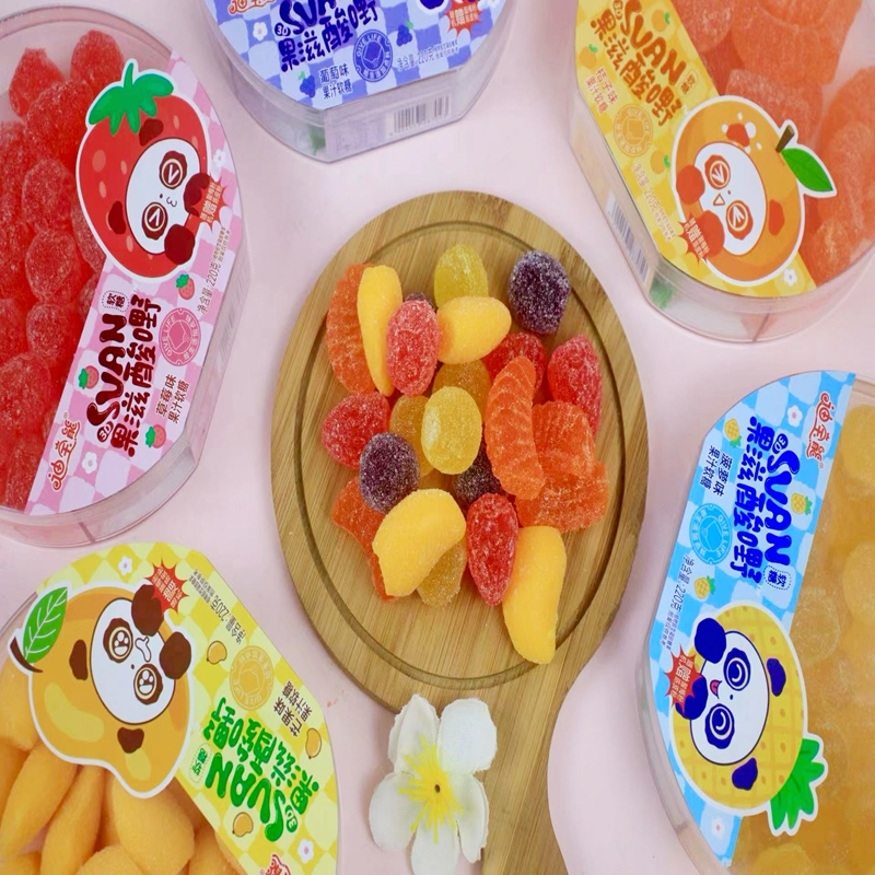 糖与酸梅粉的完美融合,在原本甜蜜可口的水果软糖中,轻轻撒上酸梅粉,陈皮粉,两者缓缓交融,形成了一种难以言喻的绝妙口感。糖的甜蜜中和了酸梅的酸涩,让整体风味更加平衡和谐,每一口都是对味蕾的**宠溺。