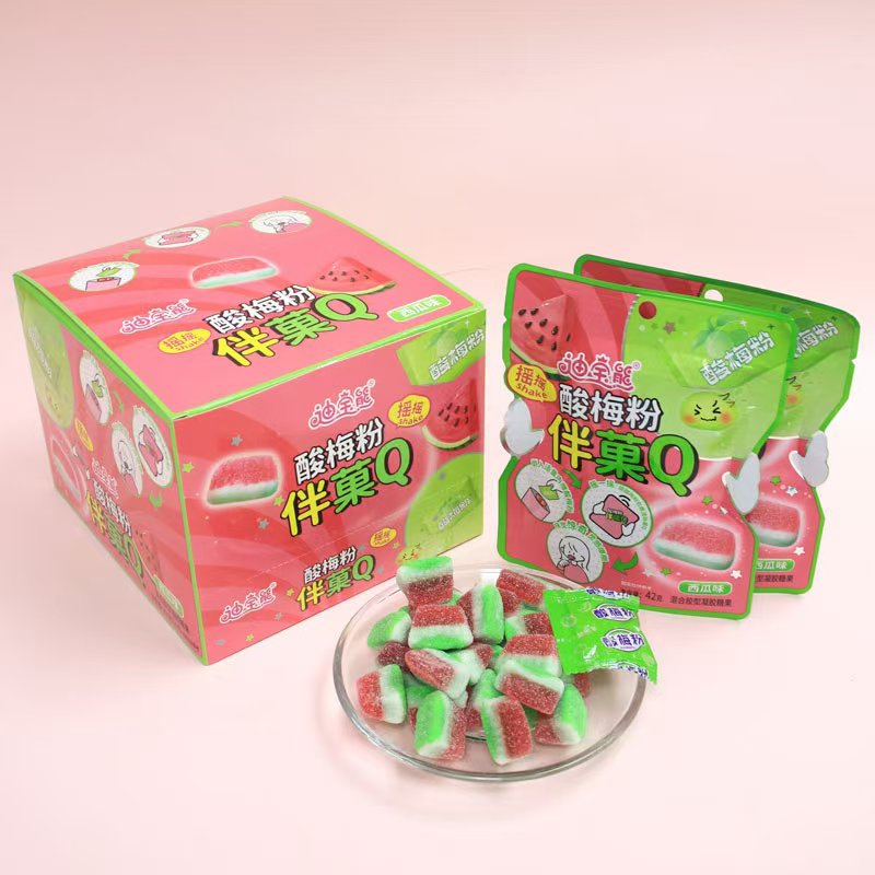 酸梅粉遇上菓Q软糖,踏上一段不同寻常的味觉探险,探索一场由酸梅粉与菓Q软糖共同演绎的酸甜盛宴,感受那份独特的甜蜜与清新。将一小包酸梅粉轻轻撒在几颗晶莹剔透的菓Q软糖上,那一刻,不仅是色彩的交融,更是味道的巧妙结合。酸梅粉的细腻粉末轻轻包裹住软糖的外衣,既保留了软糖原有的Q弹与果香,又增添了一抹清新酸爽,让人一口接一口,停不下来。一口咬下,是菓Q软糖特有的Q弹触感,紧接着,酸梅粉的酸味缓缓释放,与软糖的甜蜜交织在一起,形成了一种难以言喻的美妙平衡。这种酸甜交织的感觉,既不过分甜腻,也不过于酸涩,恰到好处地刺激了味蕾,让人回味无穷。