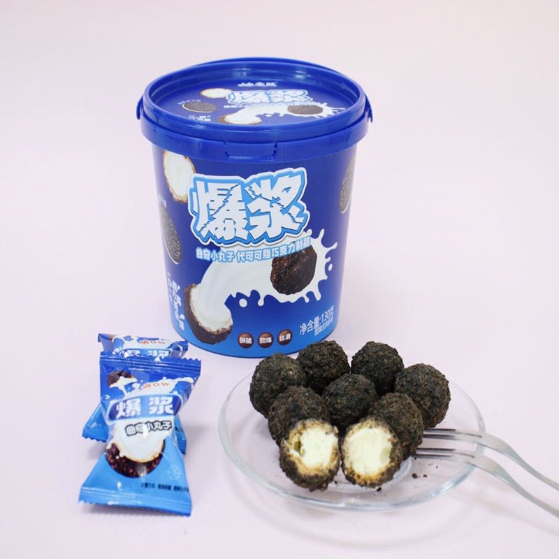 爆浆曲奇小丸子,每一口都是爆浆感觉,牛奶巧克力爆浆流心,外壳酥脆,里面爆浆甜而不腻,外脆内软“芯”意足,无法抗拒的美味零食,浓郁奶油注芯,甜甜奶味,香浓酥脆巧克力曲奇