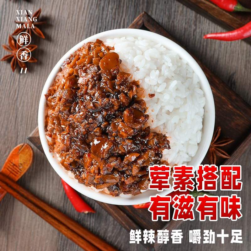 【香菇鸡丁酱】:采用自产自销优质香菇+优质的鸡肉炒制而成,香菇全部都是人工新鲜采摘,精心挑选,味道类似小鸡炖蘑菇的口感,美味下饭。【香菇鸡丁酱】:口味丰富,原味(香菇原本的味道)、香辣(能吃辣推荐)【香菇鸡丁酱】:吃法多样,可以配馍、拌面、炒饭,搭配粥、包饺子,酱爆,小炒、排骨,米饭、盖浇饭【香菇鸡丁酱】:每瓶净含量160克,日期新鲜,开盖即可食用。