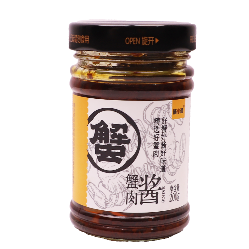 【香菇蟹肉酱】:采用稻田蟹,挑选优质蟹肉与新鲜采摘的香菇制作而成,灵魂搭配,不一样的味蕾【香菇蟹肉酱】:采用高温**工艺,保证了酱的卫生和**,0添加0防腐。【香菇蟹肉酱】:吃法多样,可以配馍、拌面、炒饭,搭配粥、包饺子,酱爆,小炒、排骨,米饭、盖浇饭