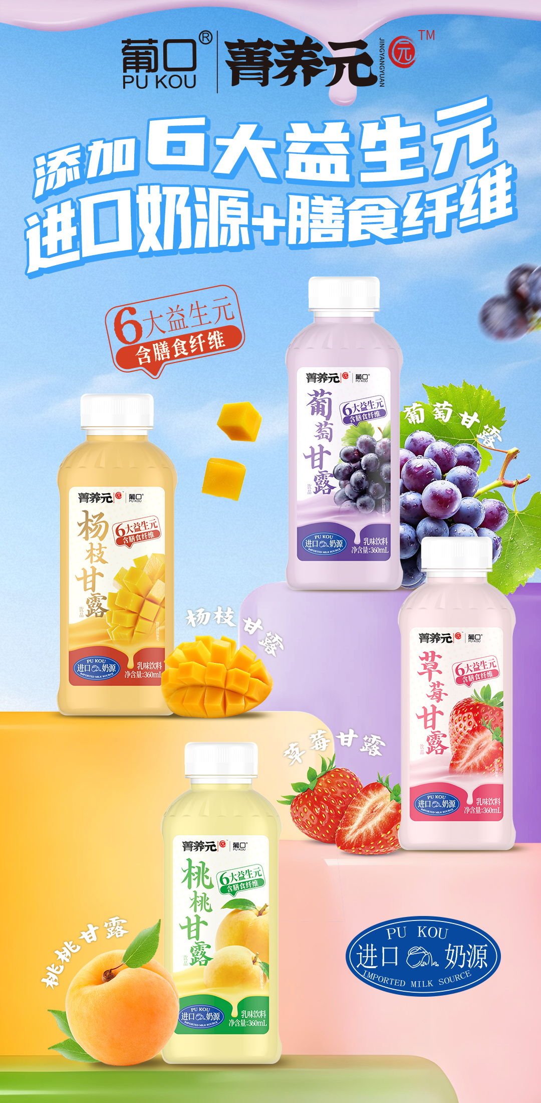 添加6大益生元,进口奶源+膳食纤维,有助肠道健康!4大经典口味:杨枝甘露、葡萄甘露、草莓甘露、桃桃甘露。