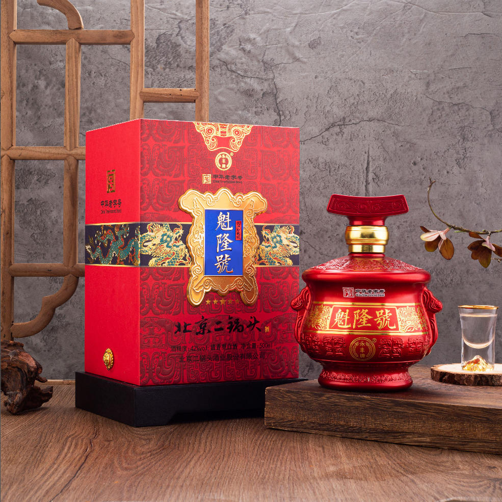 北京二锅头酒业股份有限公司作为中华老字号,永丰牌的历史可追溯至 1163 年金代 “金澜酒” 的宫廷酿造传统。魁隆号作为其代表产品,延续了 “老五甑发酵法”“看花接酒” 等古法工艺,体现了对传统技艺的敬畏与守护。