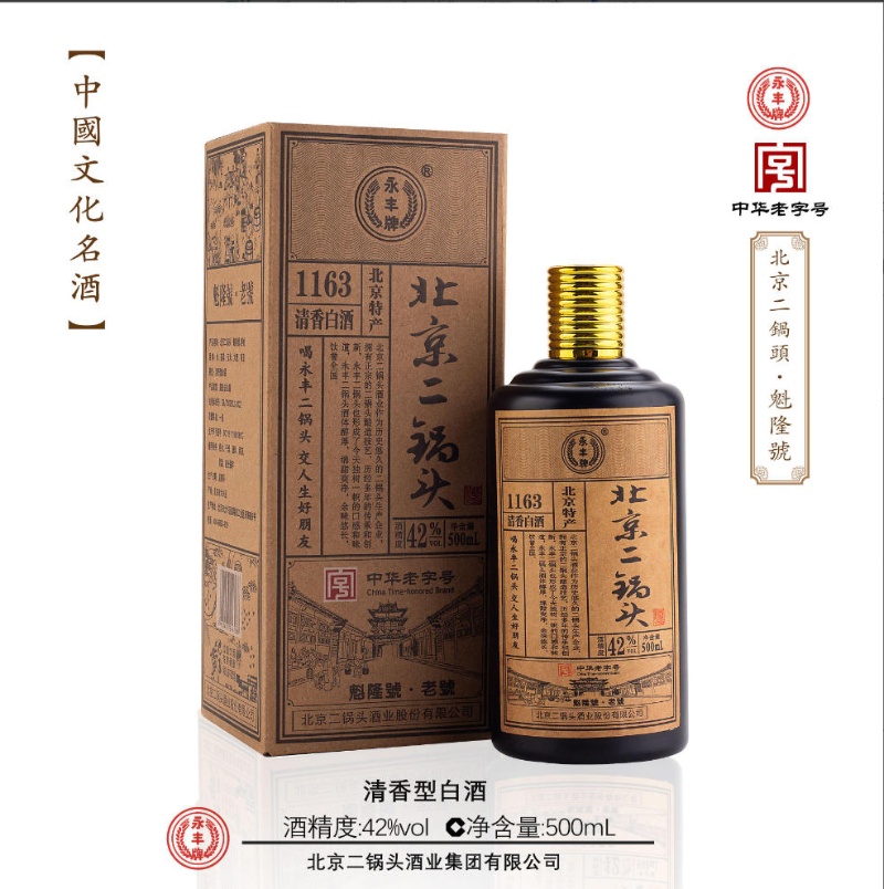 北京二锅头酒业股份有限公司作为中华老字号,永丰牌的历史可追溯至 1163 年金代 “金澜酒” 的宫廷酿造传统。魁隆号作为其代表产品,延续了 “老五甑发酵法”“看花接酒” 等古法工艺,体现了对传统技艺的敬畏与守护。