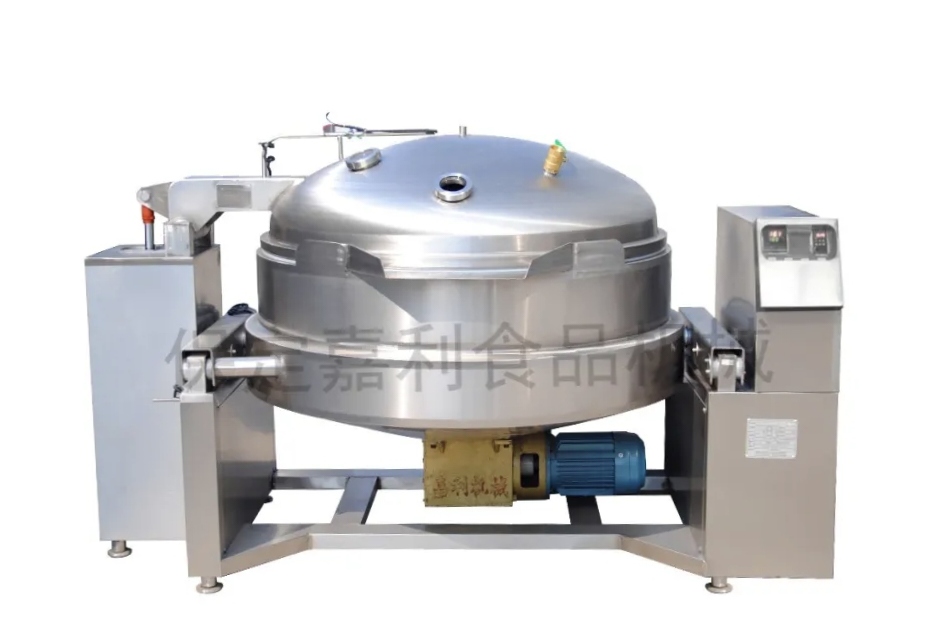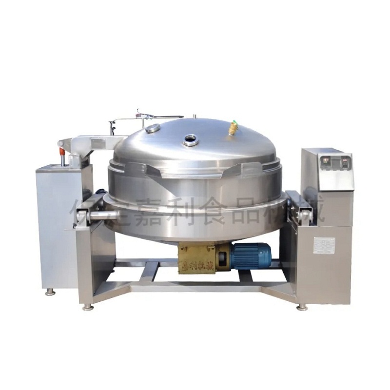 本产品采用全新设计,为下搅拌可倾式铲锅,解决了上搅拌废油滴下、出料困难和不易清洗的问题,以蒸汽为热源,升温快,温度易控,可保证食品营养成分不被破坏,各项指标均达到绿色环保标准;搅拌系统采用同行中独有的齿轮减速箱,使搅拌系统使用寿命提高;锅体采用整体保温方法,减少热量损耗、节约能源;采用真空炒制可炒制温度,以避免热敏感物料因过度受热引起颜色口味的改变,保持物料原有的色香味,同时还通过真空作用将物料中的水分抽出缩短炒制时间。