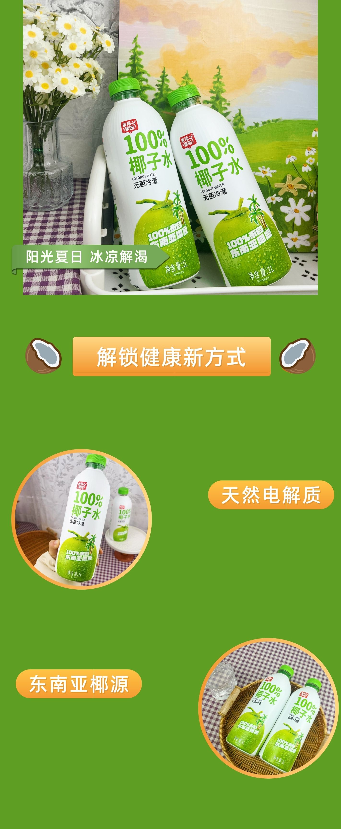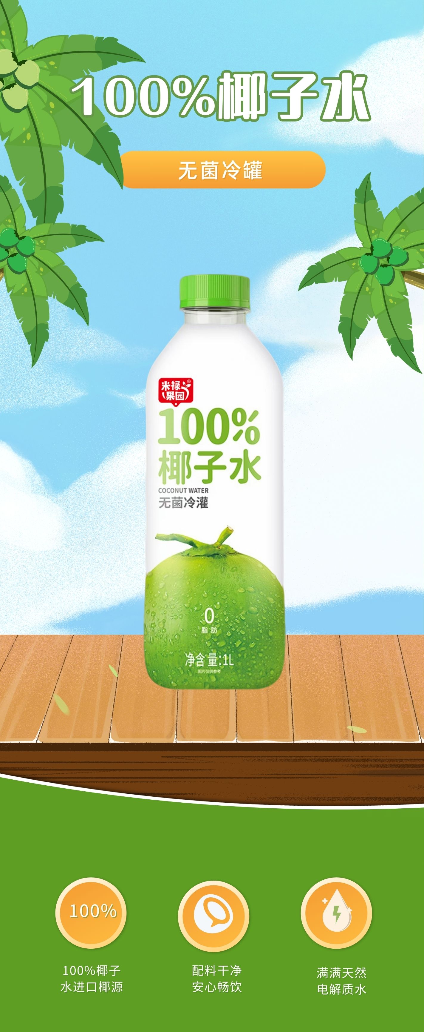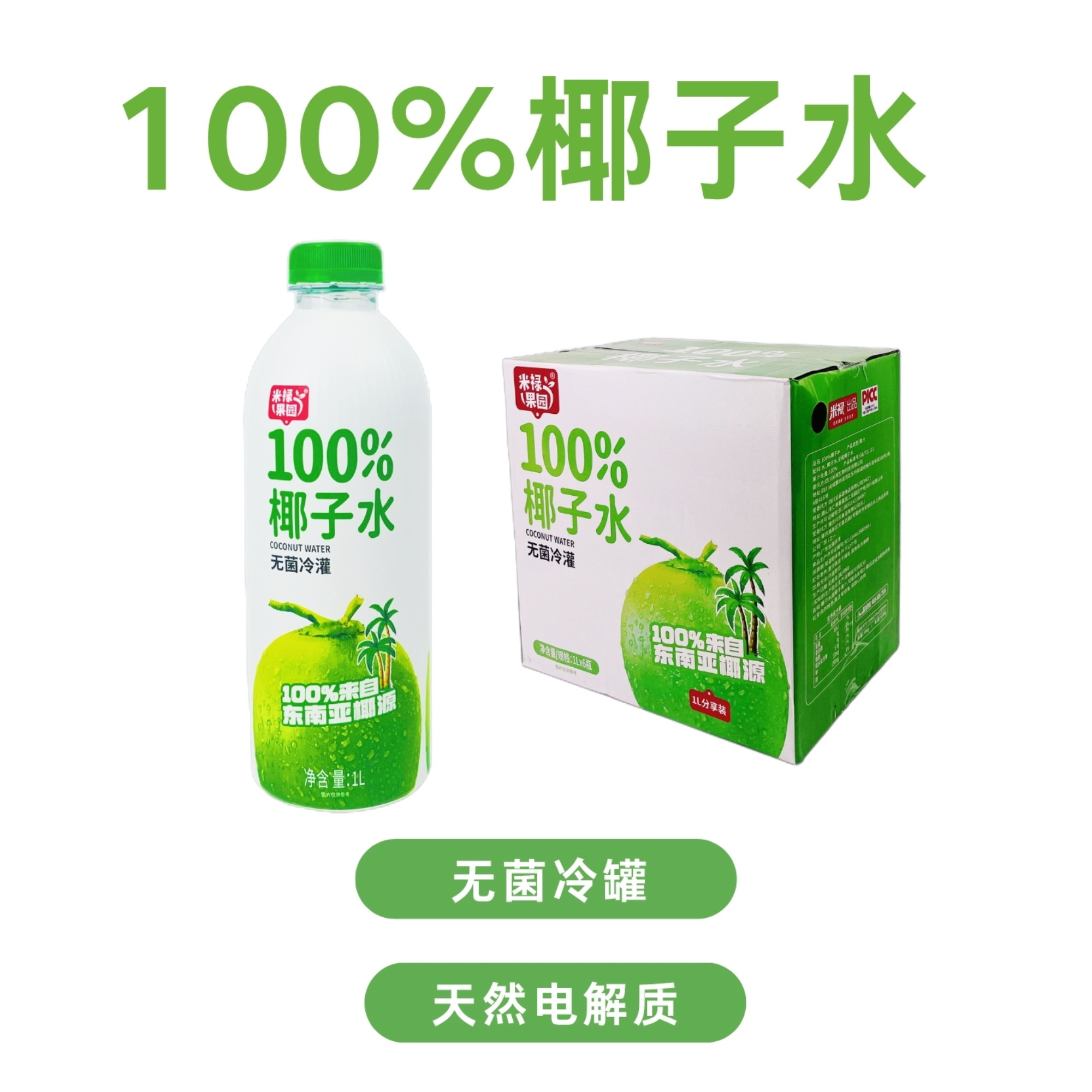 米禄果园100%椰子水1L*6瓶
