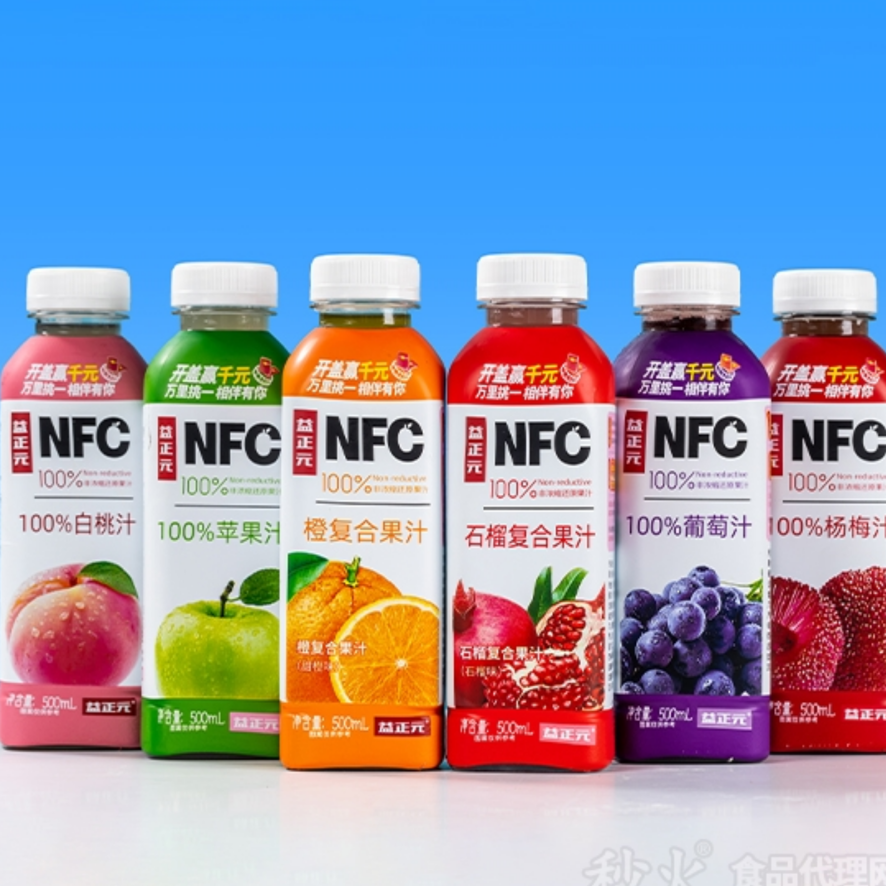 原果鲜榨,NFC纯果汁,500毫升PET材质,高端阻氧标签,全包设计,六种口味,葡萄,白桃,白桃,苹果,石榴,橙子,杨梅,满足消费者不同需求,想了解本产品的经销商欢迎致电!