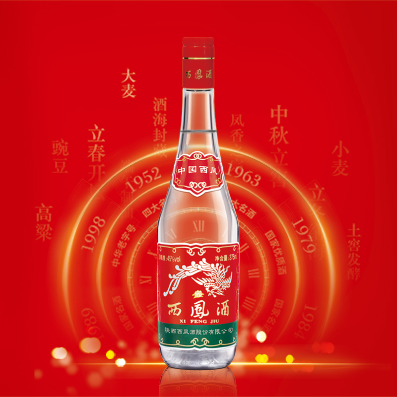 西凤375酒是一款大众消费的凤香型光瓶酒,诞生于上世纪70年代,其经典的西凤酒商标于1987年注册并沿用至今,它采用了国际通用规格375ml装,被陕西老百姓亲切的称之为“七两半”。