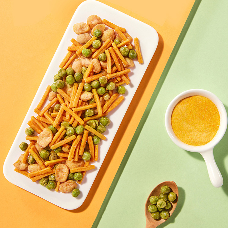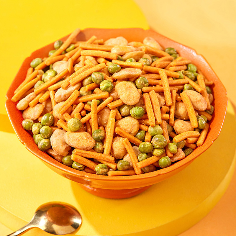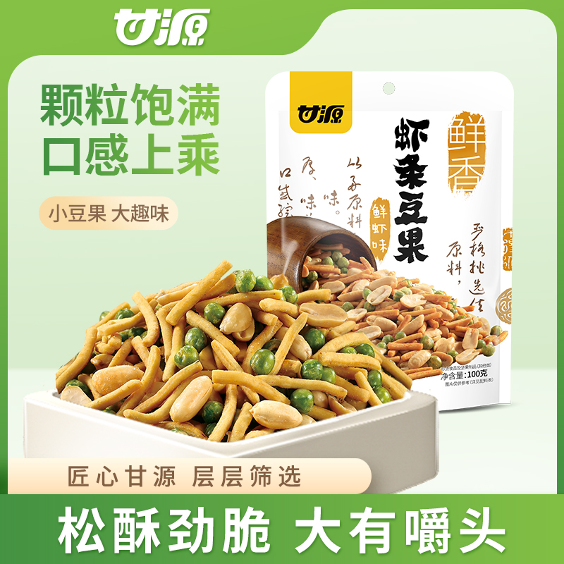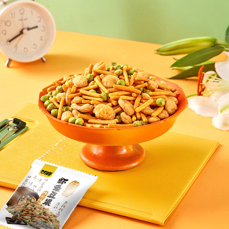 浓郁鲜虾味虾条豆果,碰上清脆花生仁和爽口青豌豆,口味层次丰富,松脆鲜香,大有嚼头。