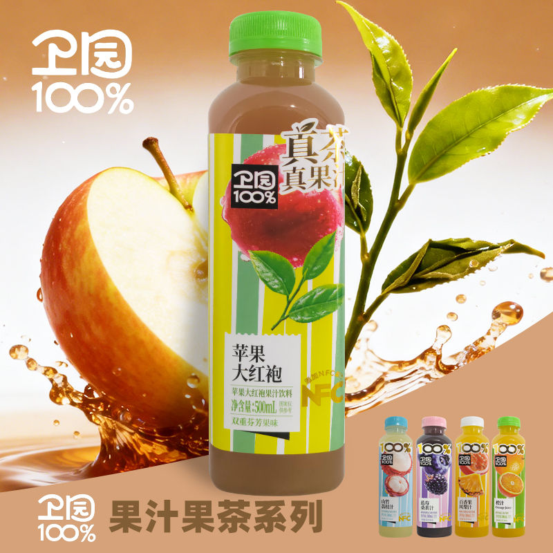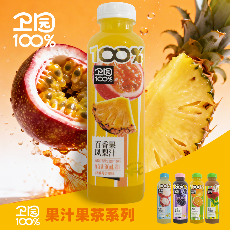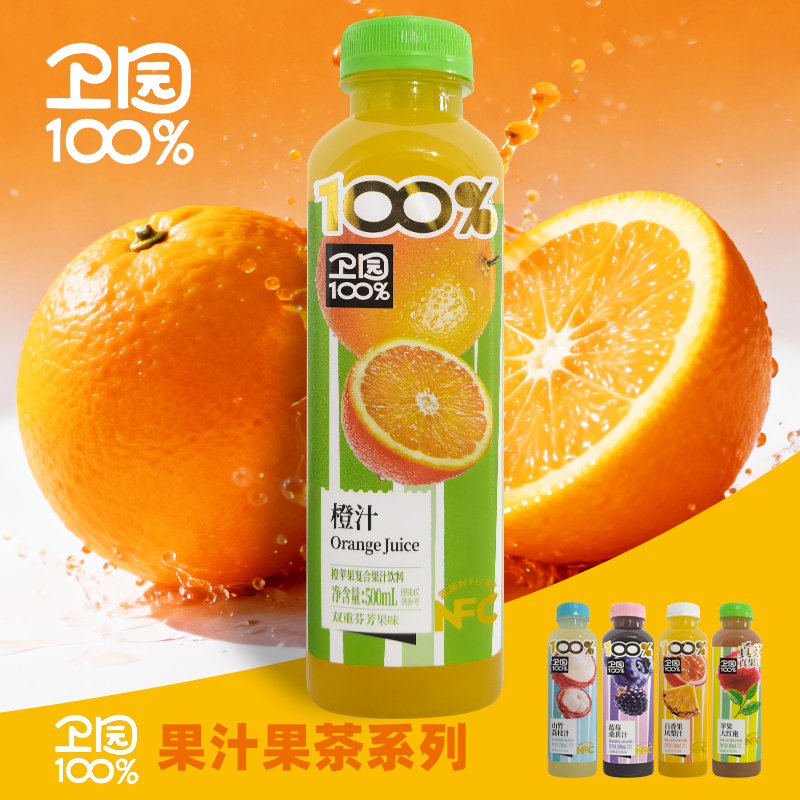 500ML卫园100%系列果汁,采用冷罐锁鲜,保留水果原有风味,营养健康,口感纯正