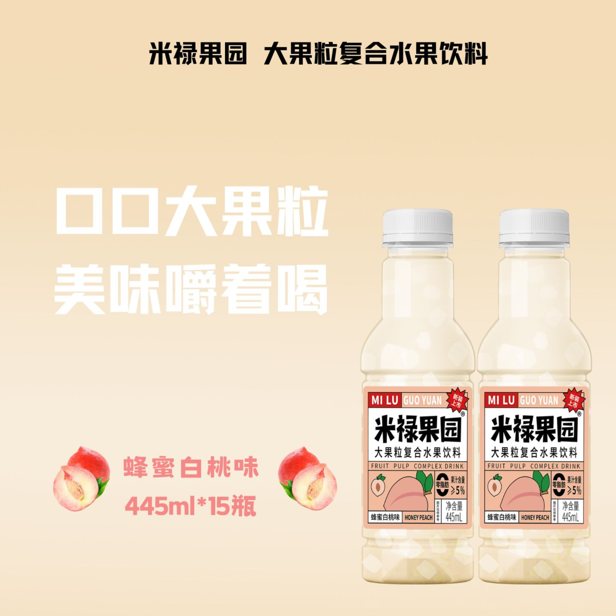 看得见的大块果肉,果汁含量≥5%,添加真实果汁,入口清爽丝滑,果粒分布均匀。