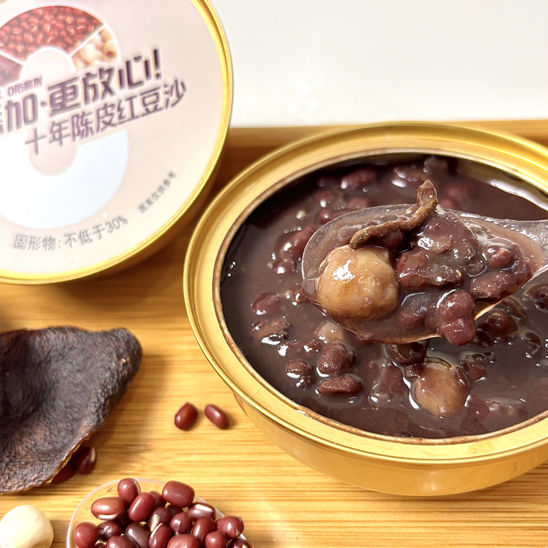 2、与同类产品相比的优势:我们用的是10年新会陈皮,清润滋养,甘香醇陈(其他家用的多是五年陈皮);口感更有沙感、更糯,因为汤汁是用红豆和绿豆研磨的。3、0香精、0色素、0防腐剂、0脂肪、0反式脂肪酸4、老人小孩都能喝!上班族当下午茶!不需要自己熬制,省时省力,开盖即食很方便,常温/冷藏/隔水加热食用都可以