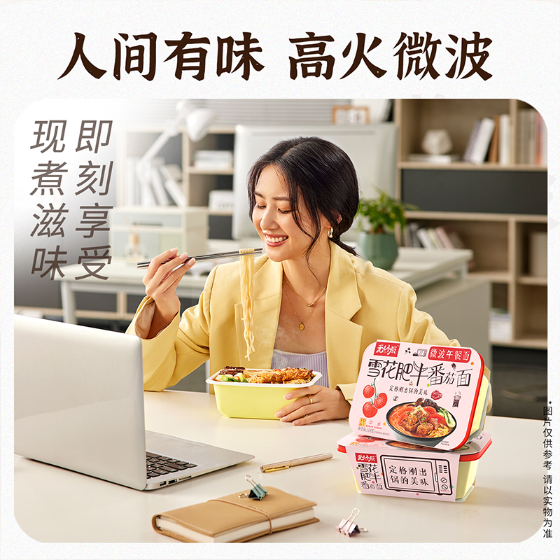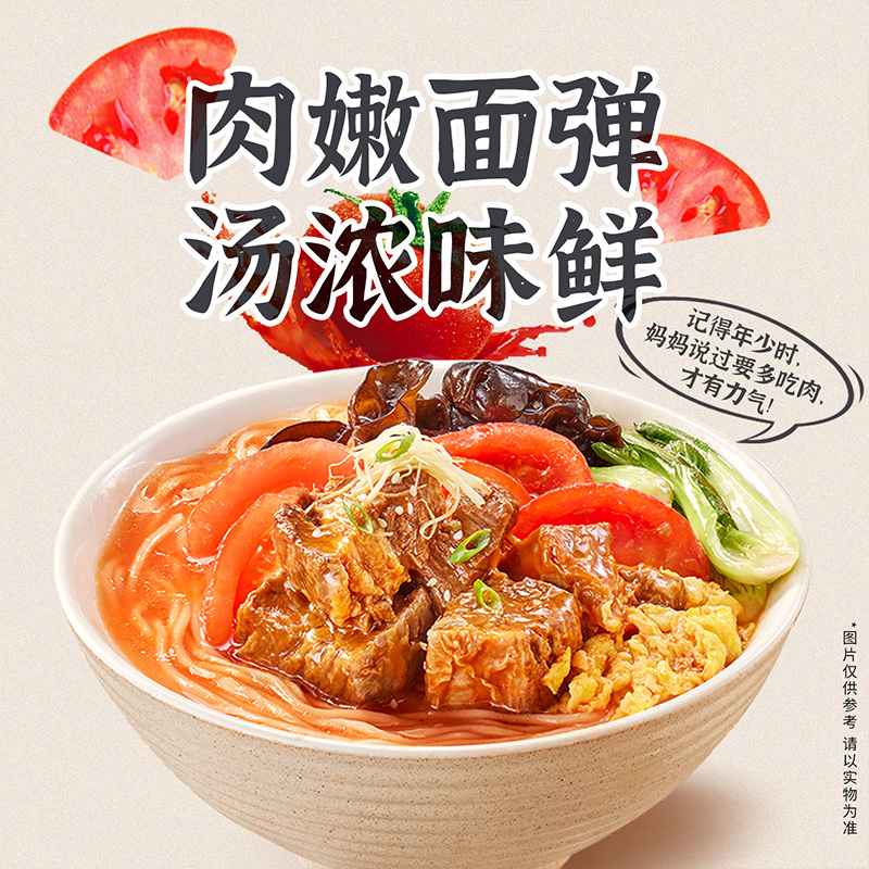 无名小厨雪花肥牛番茄面微波加热即食免煮方便速食面条非油炸汤面