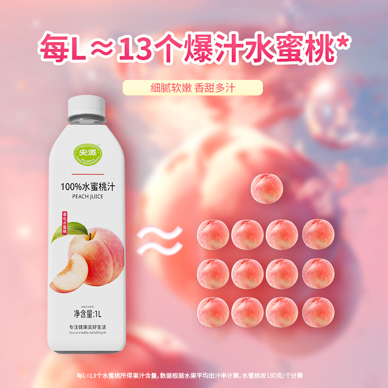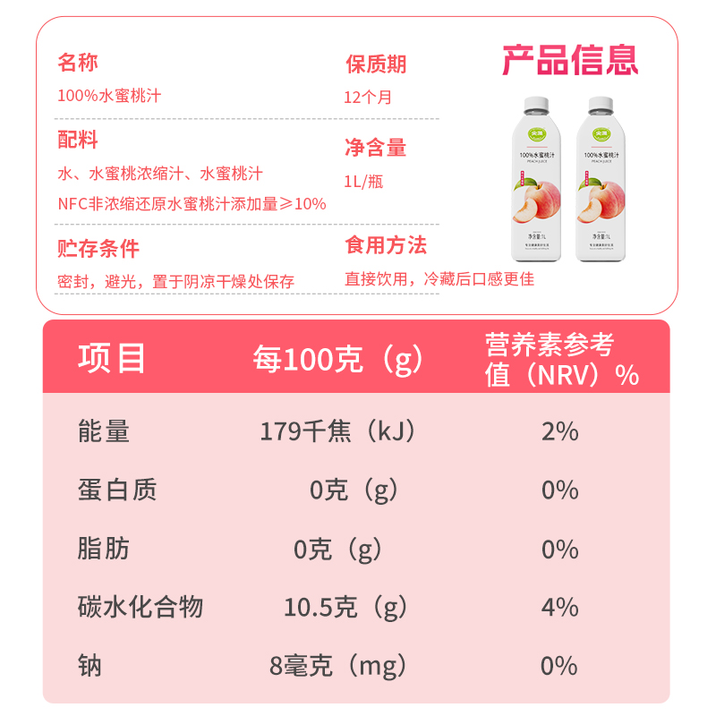 100%水蜜桃汁(方瓶)1L*6瓶