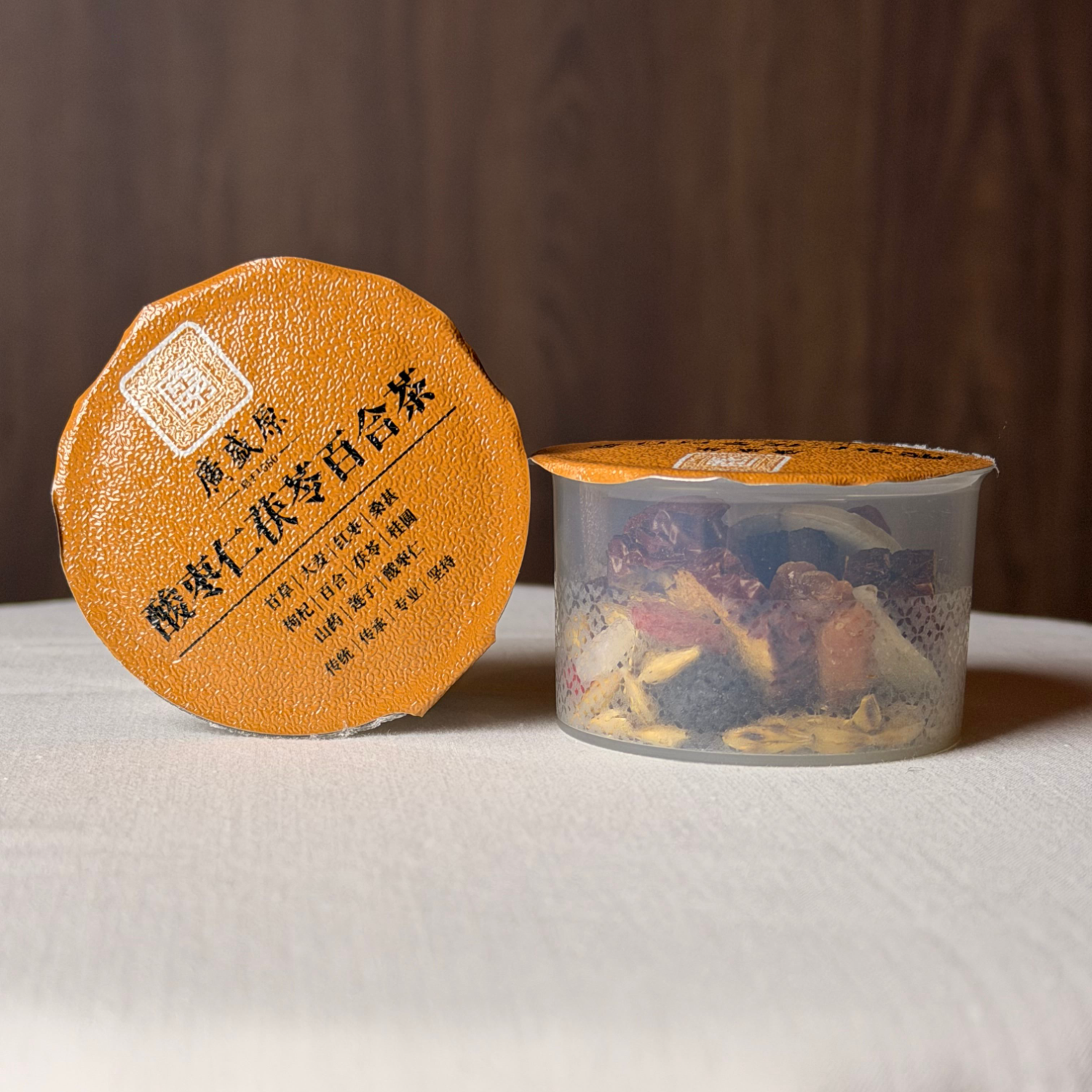 配料:甘草、大麦、红枣、桑葚、枸杞、百合、茯苓、桂圆、山药、莲子、酸枣仁。