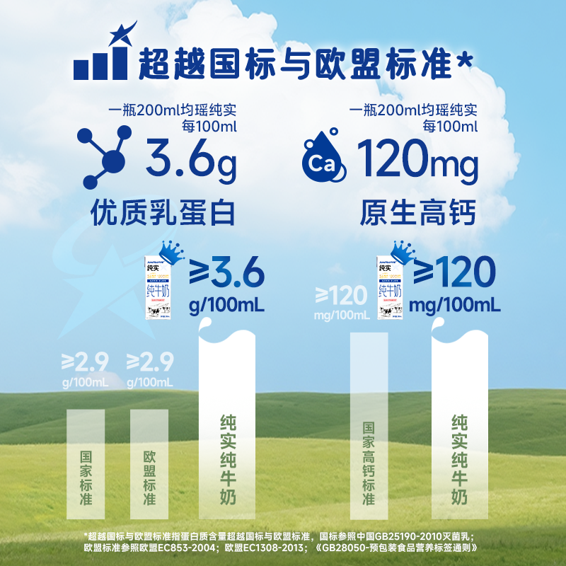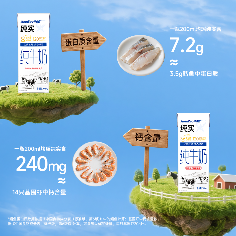 均瑶纯实纯牛奶 均瑶牛奶,健康常在优质乳铁蛋白+100项严格检测,高于国际与欧盟标准。甄选纯种荷斯坦牛,搭配TMR精细化饲养技术,从源头孕育安心好奶。200ml装富含3.6g/100ml蛋白质与120mg/100ml原生高钙;1L装则含3.2g/100ml蛋白质与100mg/100ml原生高钙,满足不同家庭需求。简约包装,低碳生活,纯粹实在。