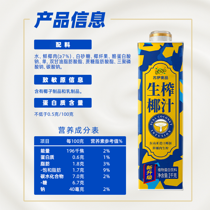 1千克苏萨生榨椰汁(方盒)