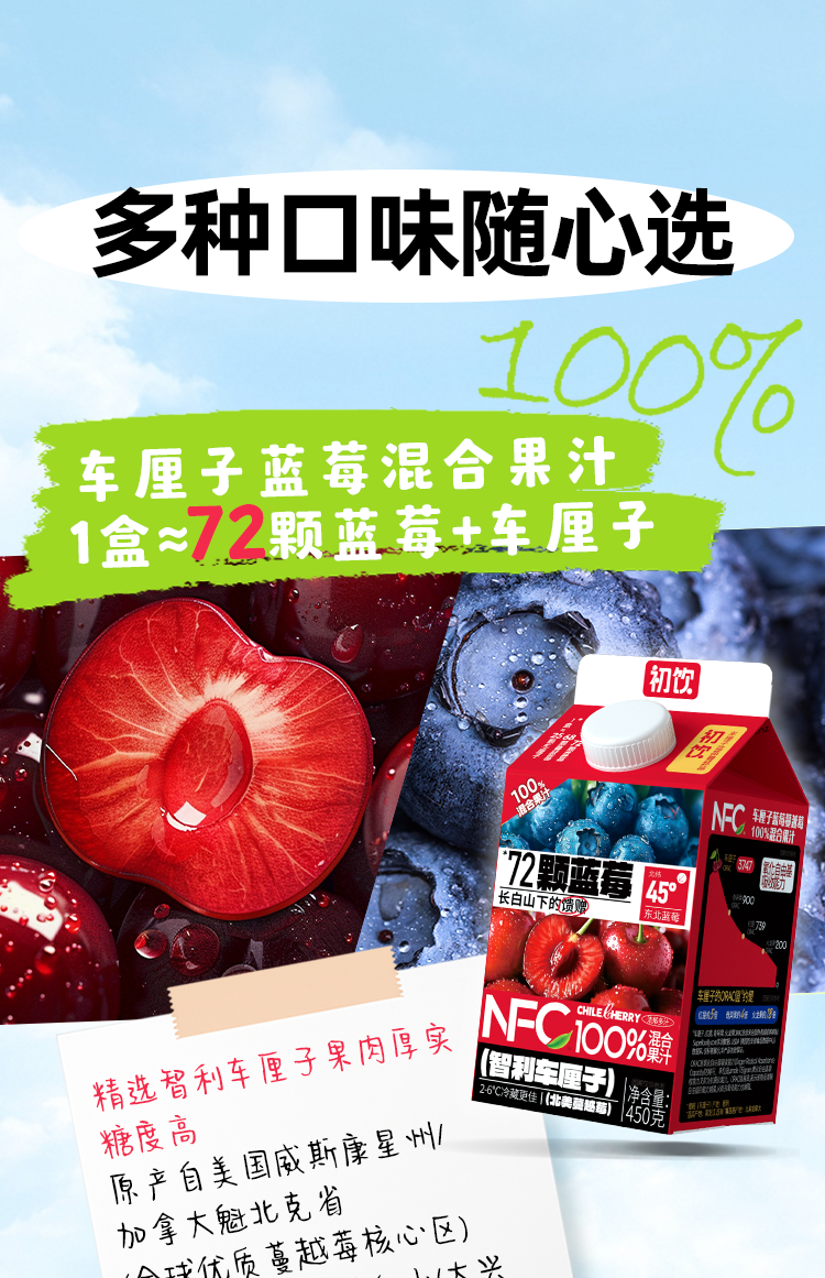 长白山NFC蓝莓浆×智利NFC车厘子汁×加拿大蔓越莓