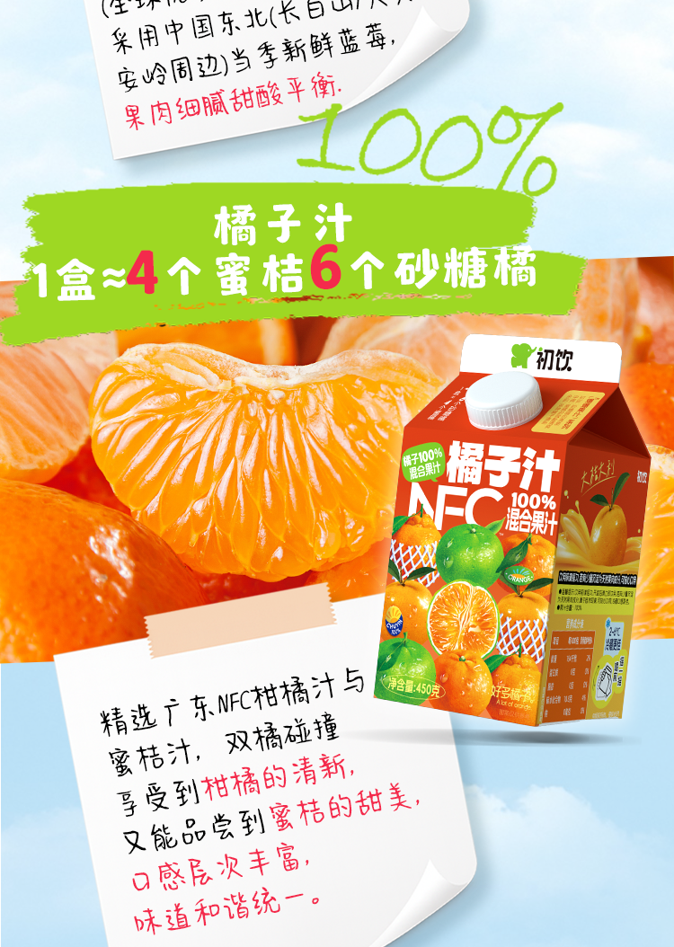 - 精选广东NFC蜜橘汁与砂糖橘汁,双橘碰撞